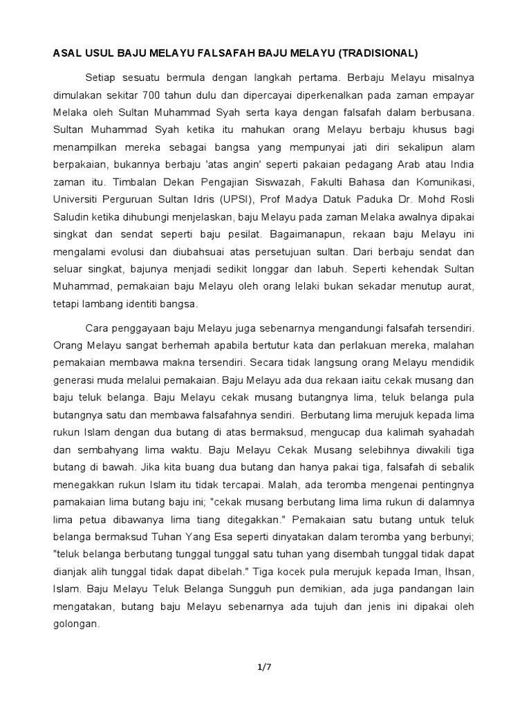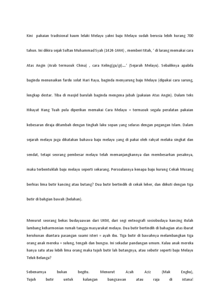 Asal Usul Baju Melayu Falsafah Baju Melayu Pdf
