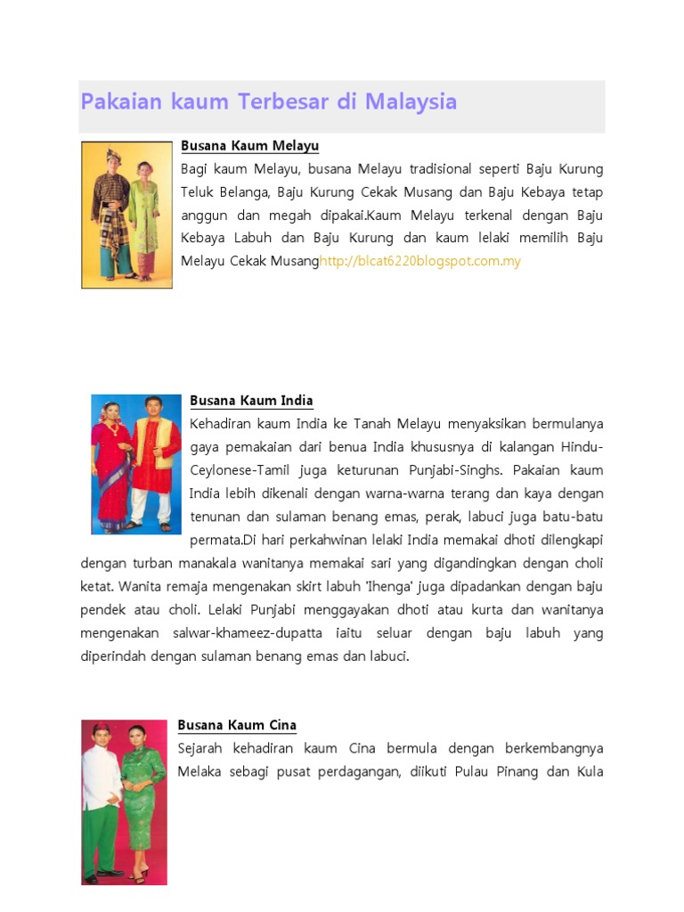 Pakaian Kaum Terbesar Di Malaysia Pdf